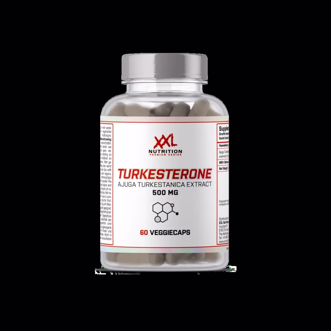Elke capsule bevat 500 mg Ajuga Turkestanica-extract, waarvan 50 mg turkesterone (10% standaardisatie). Dit maakt het een hooggedoseerde, zuivere formule zonder overbodige toevoegingen.